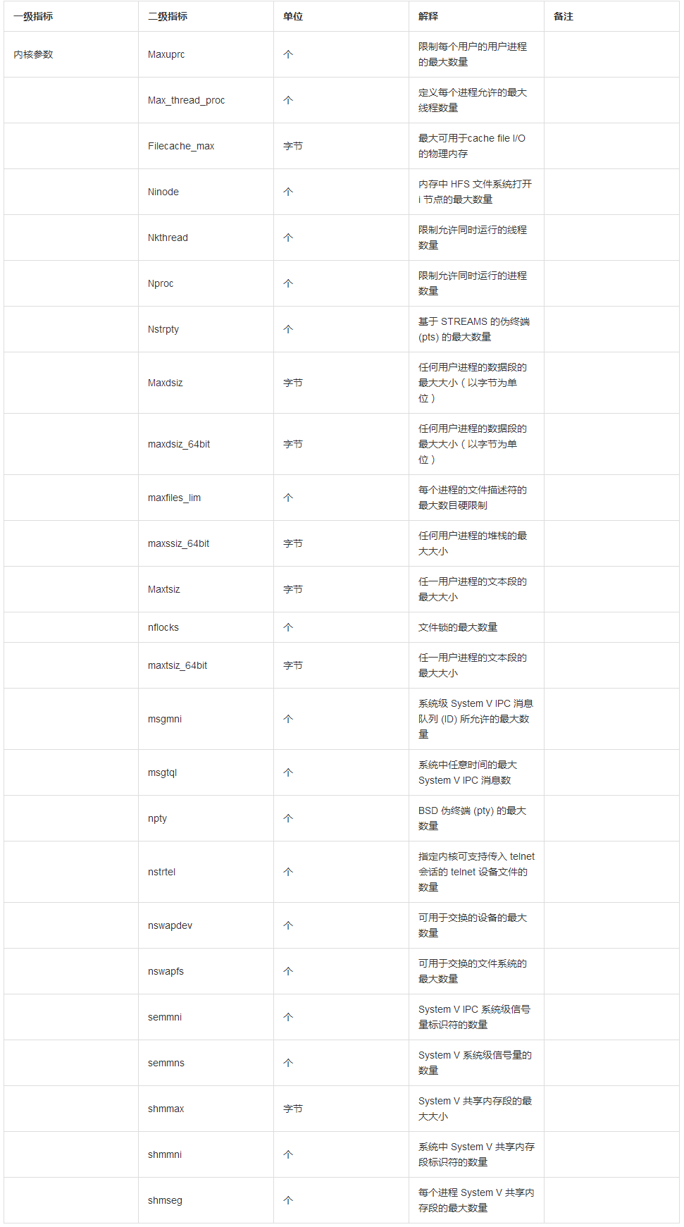 操作系统内核参数主要包括信号量、进程、文件句柄,一般不要超过设置的参数值即可,具体如下: